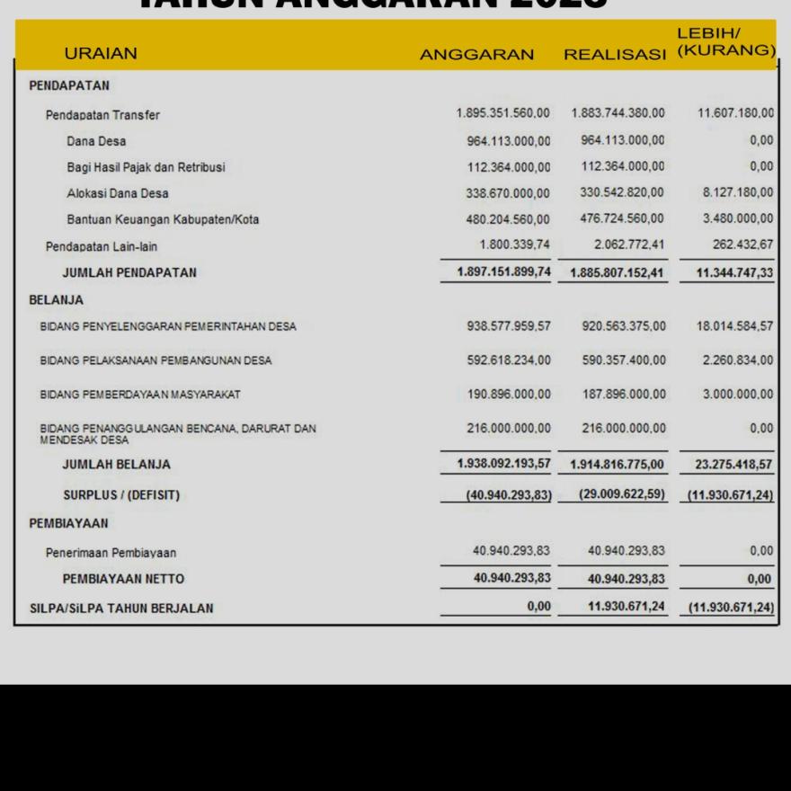Laporan Dana Desa Desa Tunggulwulung kecamatan Pandaan Kab. Pasuruan tahun 2023.