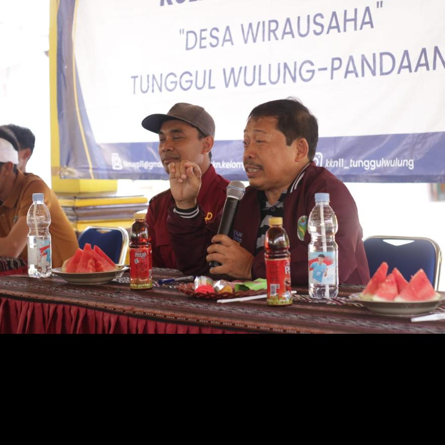 Para mahasiswa memaparkan hasil riset mereka mengenai potensi UMKM di Tunggulwulung, lalu menjelaskan strategi pemberdayaan yang sudah mulai direalisasikan, seperti: